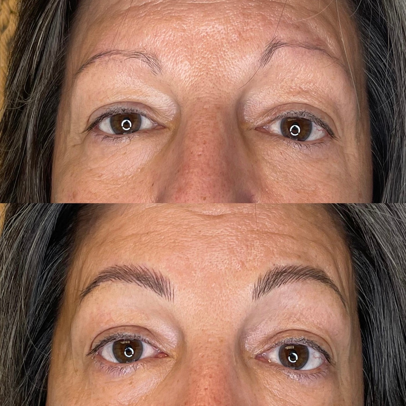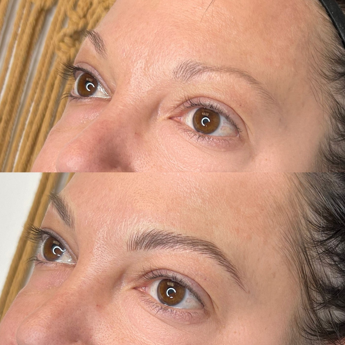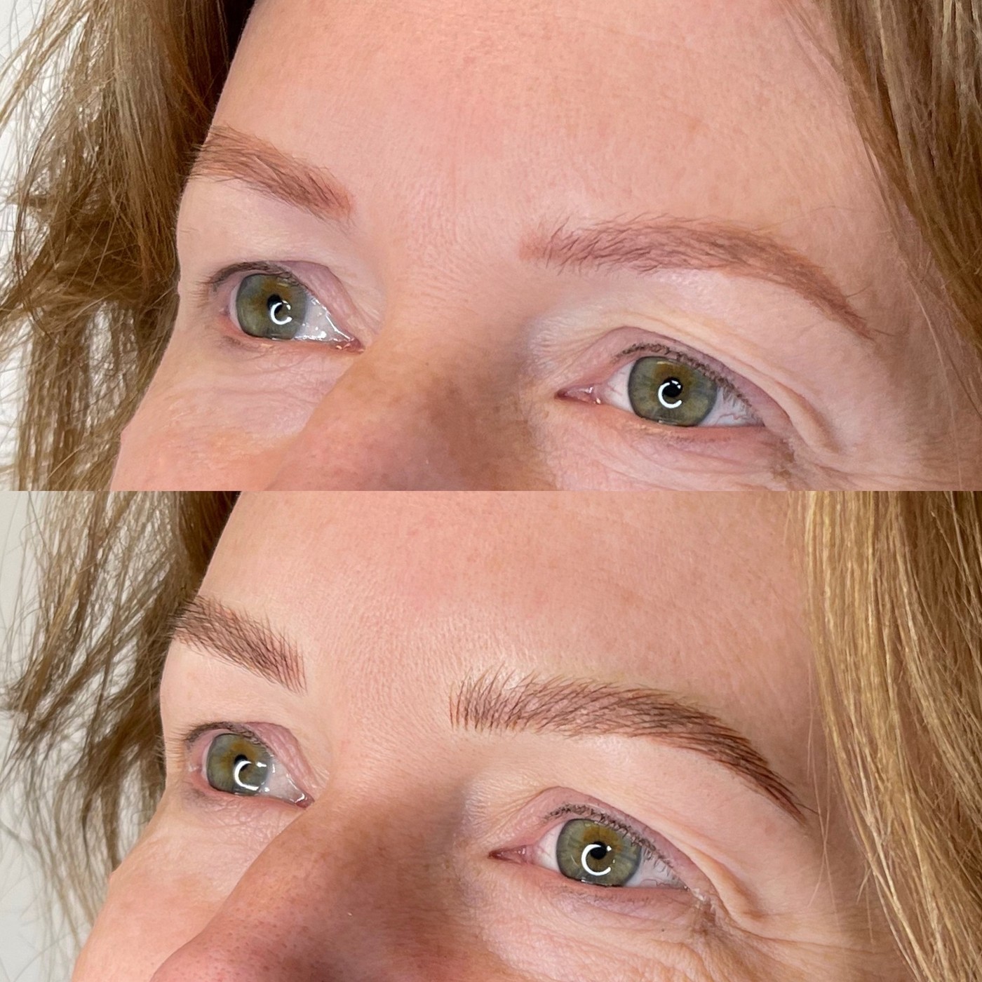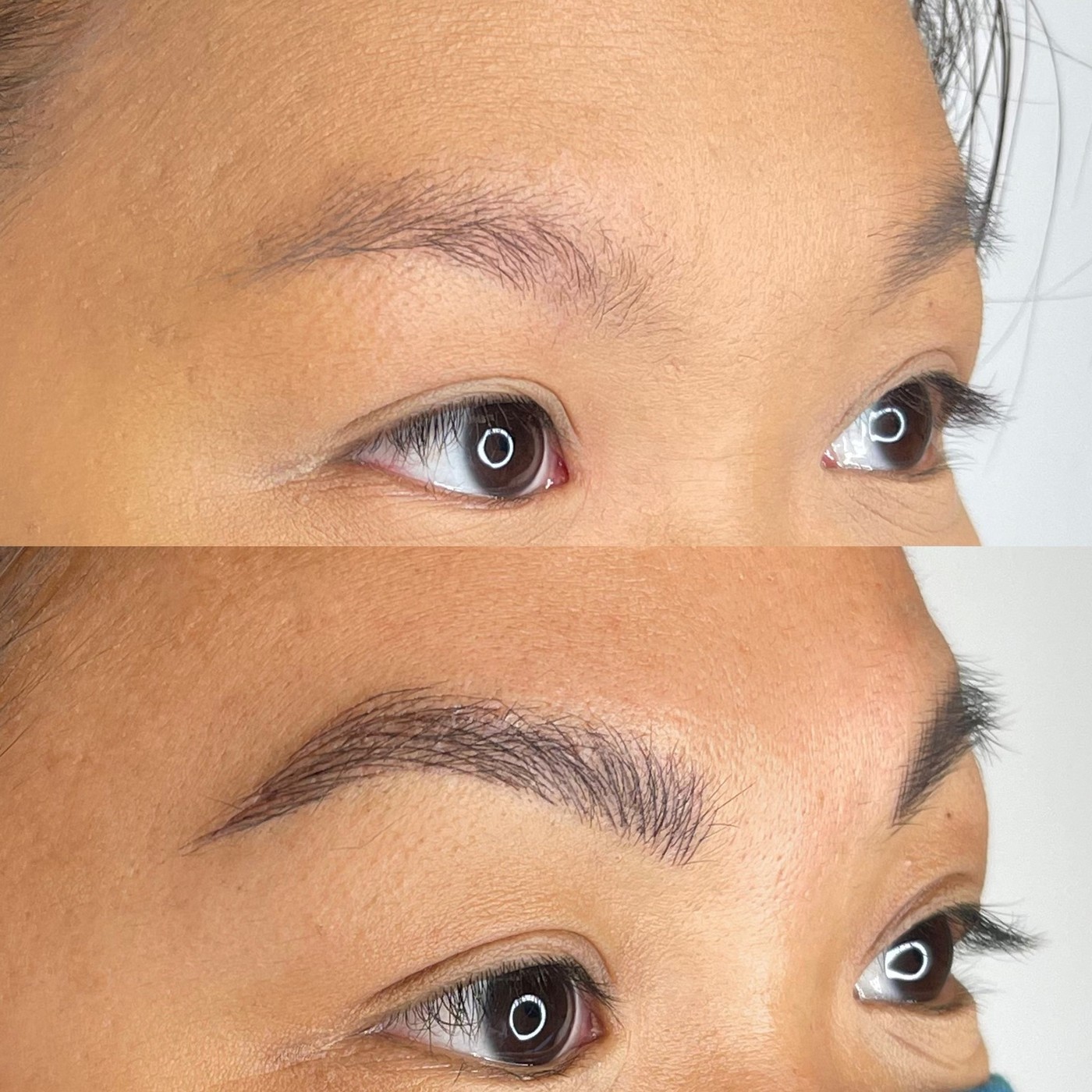 Microblading is a semi-permanent tattoo technique in which pigment is deposited into the skin using fine strokes that mimic hair. It’s like bespoke architecture for your face. Microblading is perfect for brows that are still recovering from the ‘90s or are thinning, uneven, or absent for other reasons. The result is fuller, natural-looking brows that last 18 months to three years, and will always be in style.
