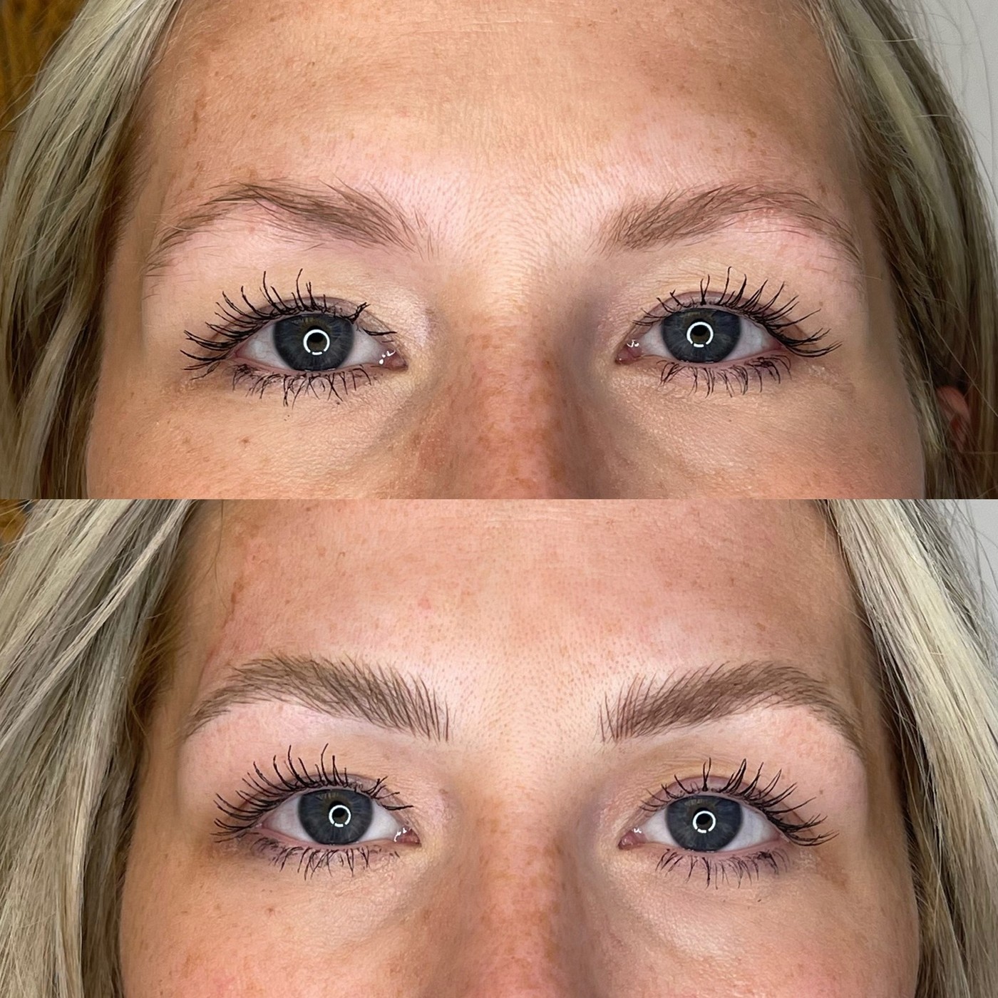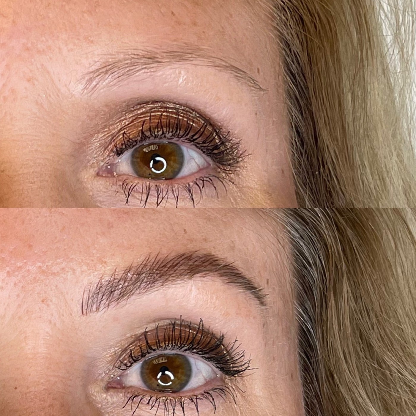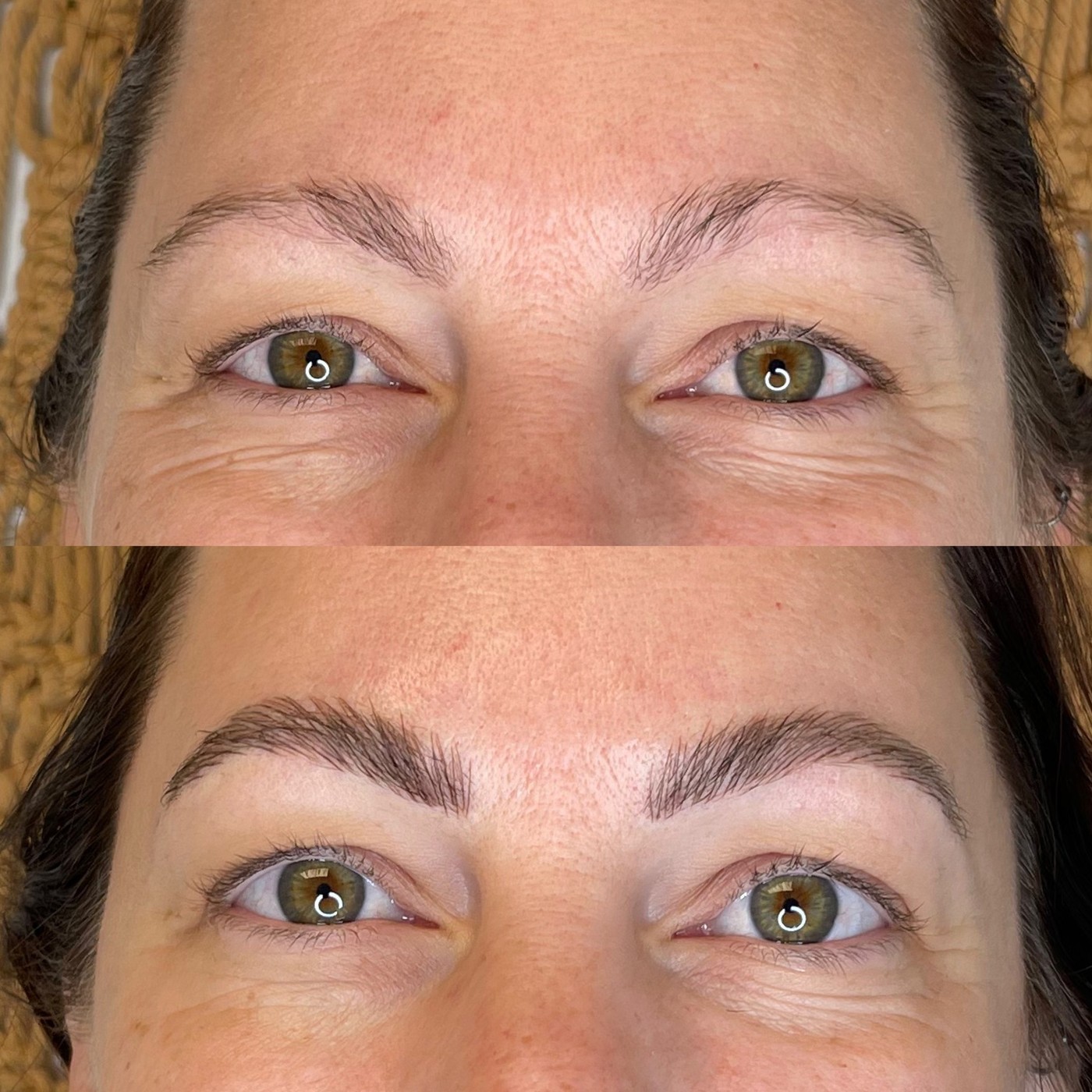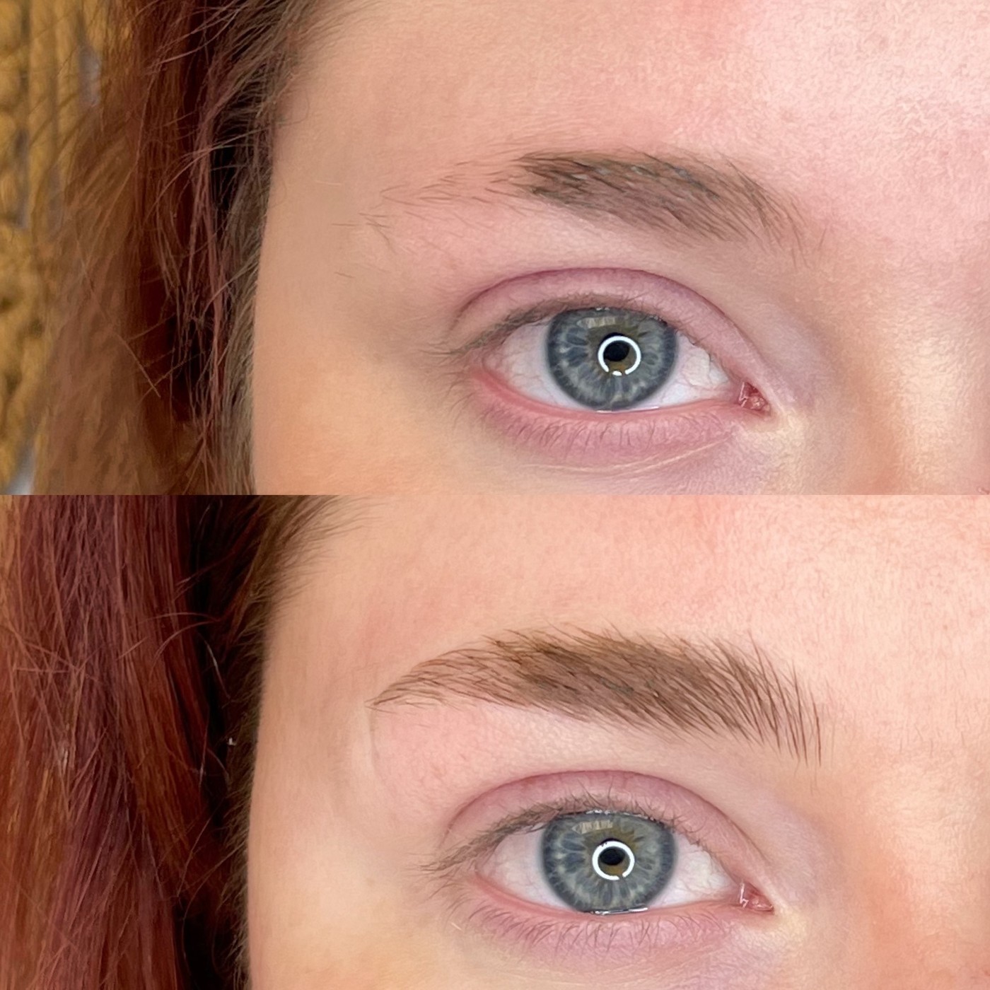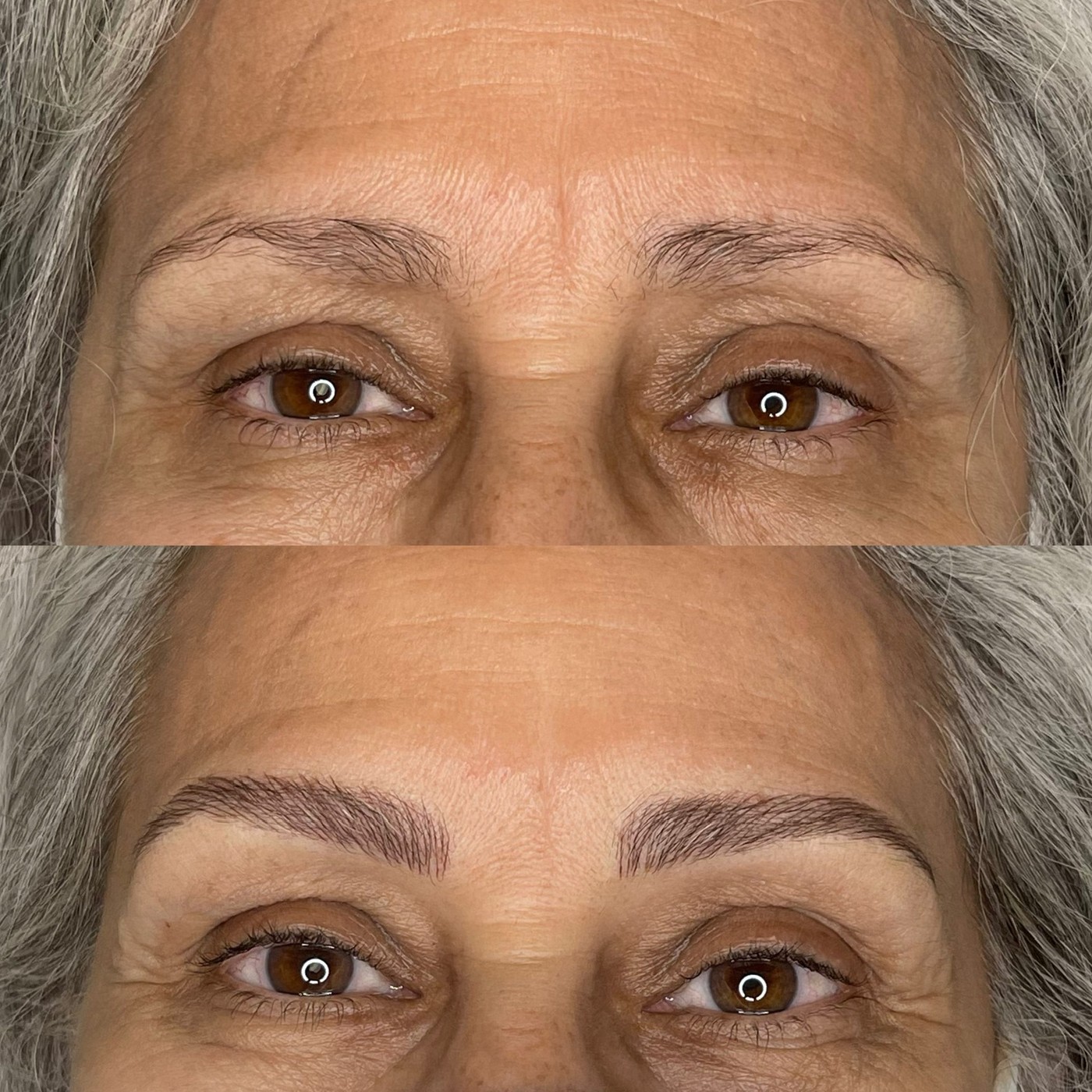 Microblading is a semi-permanent tattoo technique in which pigment is deposited into the skin using fine strokes that mimic hair. It’s like bespoke architecture for your face. Microblading is perfect for brows that are still recovering from the ‘90s or are thinning, uneven, or absent for other reasons. The result is fuller, natural-looking brows that last 18 months to three years, and will always be in style.